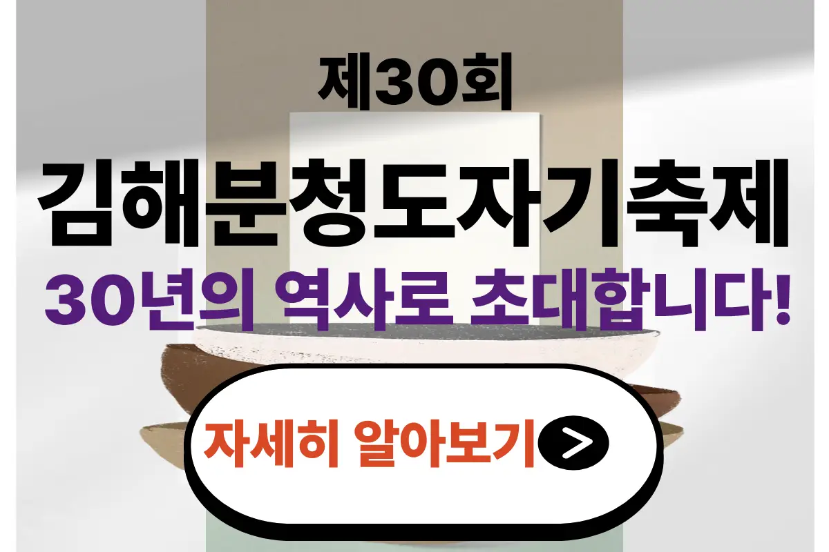 2025년 11월 4일부터 9일까지 경상남도 김해 진례면 일원에서 열리는 제30회 김해분청도자기축제는 “분청의 시간, 세종을 만나다”라는 슬로건 아래 전통과 현대가 어우러진 다채로운 도자 체험, 전시, 공연, 대회 프로그램으로 방문객을 맞이합니다. 김해분청도자기축제는 전국에서 유일하게 분청사기만을 주제로 열리는 대표적인 축제로, 조선 초기부터 이어진 분청사기의 본고장에서 개최되어 그 전통성과 지역 정체성이 매우 강합니다. 가을여행을 계획하신 분들은 김해분청도자기축제를 추천드리니 이 글을 통해 자세한 일정에 대해서 알아보시기 바랍니다. 목차김해분청도자기축제 개요김해분청도자기축제 일정프로그램오시는 길 & 주차정보방문 전 체크 사항추천 일정 플랜주변 맛집과 숙소 정보정리하며.. → 도자기축제 자세히 보기 ..