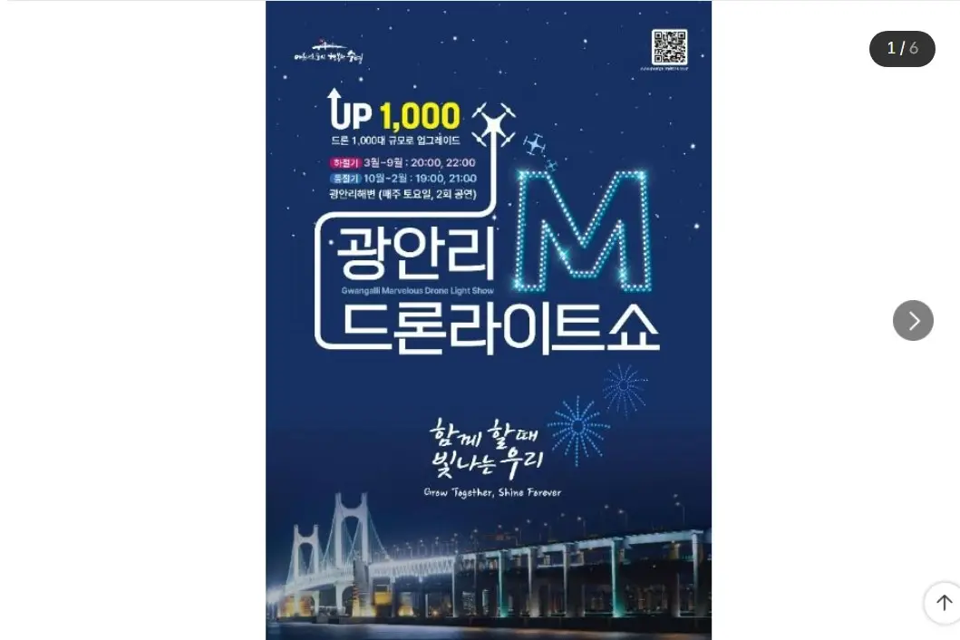 광안리 M 드론 라이트쇼 추석 특별공연이 드디어 시작합니다!2025년 10월 4일 토요일 저녁 8시, 광안리 해변이 환상의 빛으로 물드는 순간을 많은 분들이 기다려왔을 텐데요. 이번 공연은 무려 2,500대의 드론이 하늘을 수놓으며 ‘빛으로 잇는 한가위’를 주제로 펼쳐지는 단 한 번뿐인 추석 스페셜 공연입니다. 올해 추석은 가족, 연인, 친구와 함께 광안리 M 드론 라이트쇼 추석 특별공연을 즐겨보세요. 이 글에서는 광안리 M 드론 라이트쇼 추석 특별공연 200% 관람을 위해서 공연 일정부터 교통 통제, 주차장, 관람 명당까지 한눈에 정리했으니 지금부터 자세히 알아보시기 바랍니다. 목차공연 기본 정보10월 공연 일정표교통 통제 구간 및 시간교통 통제 시 이동 방법 안내대중교통 이용 안내대중교통 이용 안..