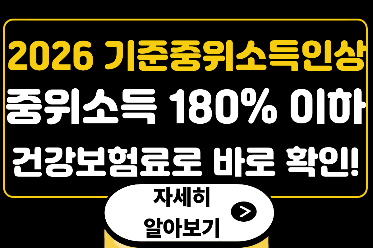 2026년 기준중위소득이 역대 가장 크게 오르면서 더 많은 가구가 복지 혜택을 받을 수 있게 되었습니다. 특히 기준중위소득 180% 이하 가구에 해당하면 주거·교육·의료·청년 지원 등 여러 국가 복지제도에 참여할 수 있습니다. 이 글에서는 기준중위소득 180% 이하 가구가 정확히 무엇인지, 2026년 금액 기준, 받을 수 있는 혜택, 신청 방법까지 자세히 알아보겠습니다. 목차기준중위소득이란?2026년 기준중위소득 180% 이하 가구는?기준중위소득 비율표주요 복지혜택건강보험료 기준복지사업 신청방법신청 시 주의할 점공식 사이트정리하며.. → 중위소득인상 자세히 보기 ← 1. 기준중위소득이란?기준중위소득은 우리나라 모든 가구를 소득 순으로 배열했을 때 정중앙에 위치한 소득을 말합니다. 즉 평균보다 실제 ..