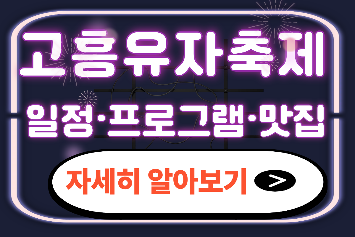 2025 고흥유자축제 일정 프로그램 주변 맛집 숙소 교통 주차 정보 총정리! 올해도 향긋한 유자 향기가 가득한 전라남도 고흥에서 가을의 정취를 만끽할 수 있는 특별한 축제가 열립니다. 바로 고흥유자축제 일정에 맞춰 진행되는 제5회 고흥유자축제입니다. 이번 글에서는 축제 일정부터 프로그램, 주변 맛집과 숙소, 교통 및 주차 정보까지 한눈에 볼 수 있도록 총정리해드릴게요. 가을 여행을 준비하시는 분들은 이 글을 통해 고흥유자축제 일정에 대해 자세히 알아보시기 바랍니다. 목차고흥유자축제란?2025 고흥유자축제 일정축제 프로그램고흥유자축제 주변 맛집 및 숙소 추천오시는 길 - 교통 및 주차 정보공식 사이트 및 문의정리하며.. → 유자축제 더 알아보기 ← 1. 고흥유자축제란?대한민국 대표 유자 도시 고흥은 ..